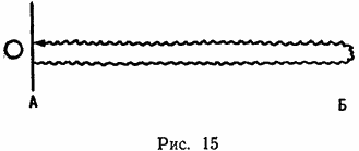Упражнения по овладению техникой передачи мяча можно выполнять и с секундомером. В этом случае расстояние от пункта А, откуда начинается бег, до пункта Б — места возвращения должно соответствовать степени подготовки игроков. Игрок начинает бег с мячом по сигналу и одновременно включается секундомер. Бег заканчивается, когда игрок с мячом вернется в пункт А (рис. 15).
