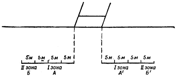 Вторая зона Б или Б1 в 5 м от первой зоны А или А1, т, е. в 15 м от штанг.
