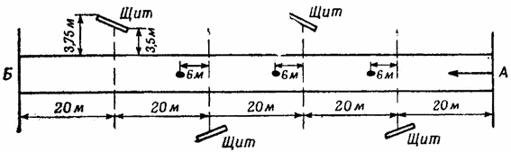 Диски расположены последовательно через 20 м (налево), 40 м (направо), 60 м (налево) и 80 м (направо) от исходной точки, как показано на рис 63.