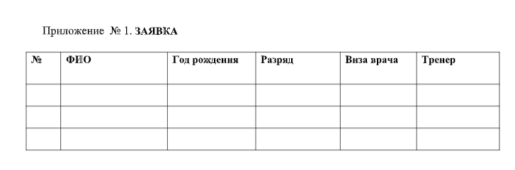 2. Заявка на участие, заверенная в физкультурном диспансере и старшим
