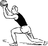 В движении игрока, которое он выполняет при приеме, участвуют и ноги. Общая координация движений рук и ног такая: в момент сгибания рук в локтевых суставах (приближение их к груди) игрок приседает, сгибая ноги в коленных суставах; при разгибании рук ноги выпрямляется в коленных суставах, это способствует более мягкому приему мяча. Работа ног играет существенное значение при передаче мяча на большое расстояние. Касание мяча пальцами не должно быть слишком коротким; кисти должны как бы «сопровождать» мяч на участке 10—15 см, что придает передаче большую точность. При кратковременном касании труднее сделать точную передачу. Но нельзя и слишком длительно касаться мяча — судья может фиксировать бросок. При отрыве мяча от пальцев руки находятся в состоянии неполного разгибания в локтевых суставах. Этот «запас разгибания» необходим по следующим соображениям: предварительный расчет при приеме мяча иногда несовершенен и в момент приема необходимо дополнительно корректировать движение за счет этого «запаса разгибания». Только при передачах мяча на очень большое расстояние руки выпрямляются полностью.