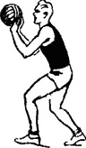 Вариант второй. Прием мяча вытянутыми вперед руками. Игрок без перемещения наклоняет туловище и вытягивает руки далеко вперед (рис. 16). Способ приема мячей вынужденный, крайне напряженный, и игроку трудно контролировать направление передачи. Таким способом мяч можно направить только перед собой и почти нельзя сделать передачу вправо или влево.